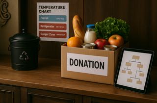 Use this quick reference to move surplus food from shelf to safe donation with confidence. The interactive tree walks teams through wholesomeness, packaging, date marks, cold chain and traceability in under a minute. Disclaimers provide copy-ready language for temperature control, labeling, allergens and recall records. The organics timing grid sets holding limits and end-of-day actions so nothing lingers, smells, or attracts pests. Add it to your SOPs or training hub and keep diversion high without slowing the floor.